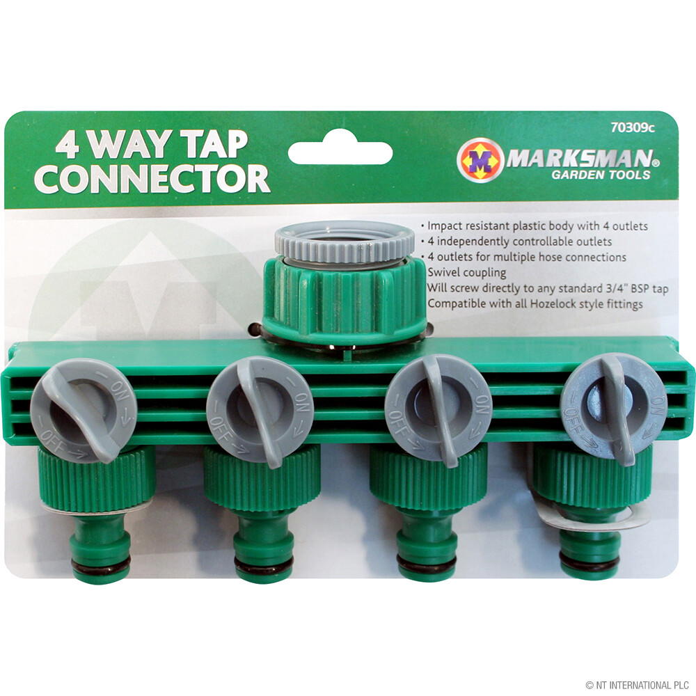 New 4 Way Tap Connector Adapter Garden Hose Pipe Adaptor Outlet Splitter Ebay