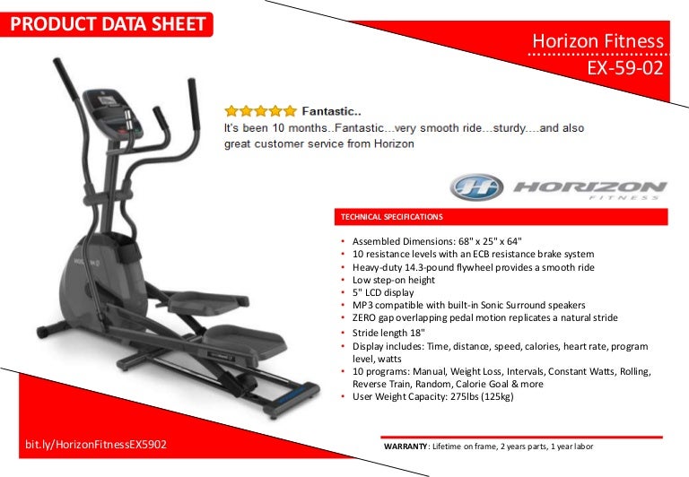 Horizon Fitness Ex 59 02 Elliptical Trainer Product Data Sheet